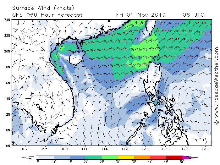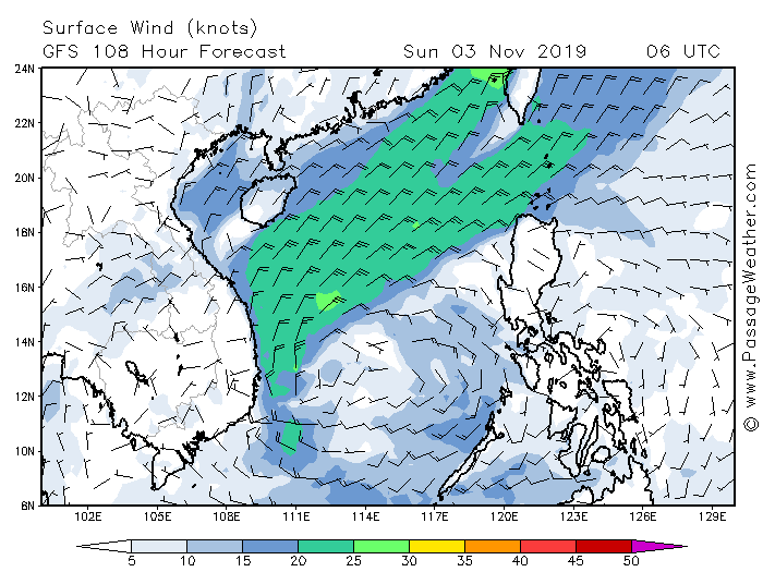 Vùng nguy hiểm trên Biển Đông trong 24 giờ tới (gió mạnh từ cấp 6, giật từ cấp 8 trở lên): từ vĩ tuyến 14,0 đến 18,5 độ Vĩ Bắc; từ kinh tuyến 111,5 đến 118,5 độ Kinh Đông. Toàn bộ tàu thuyền hoạt động trong vùng nguy hiểm đều có nguy cơ cao chịu tác động của gió mạnh, sóng lớn và lốc xoáy.